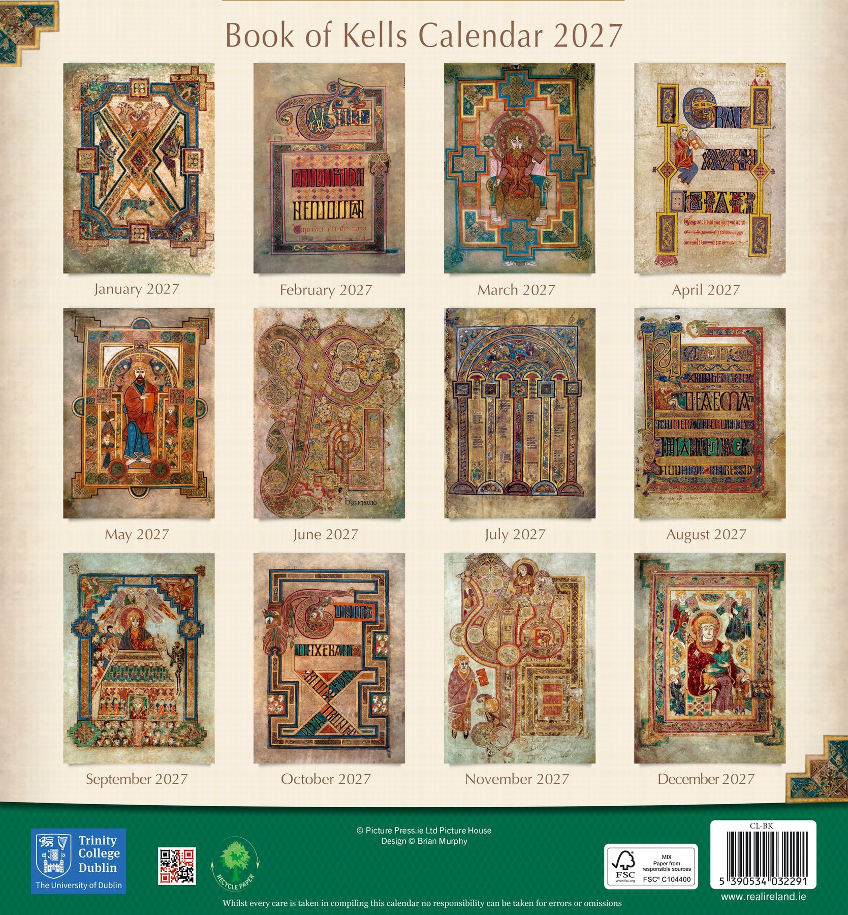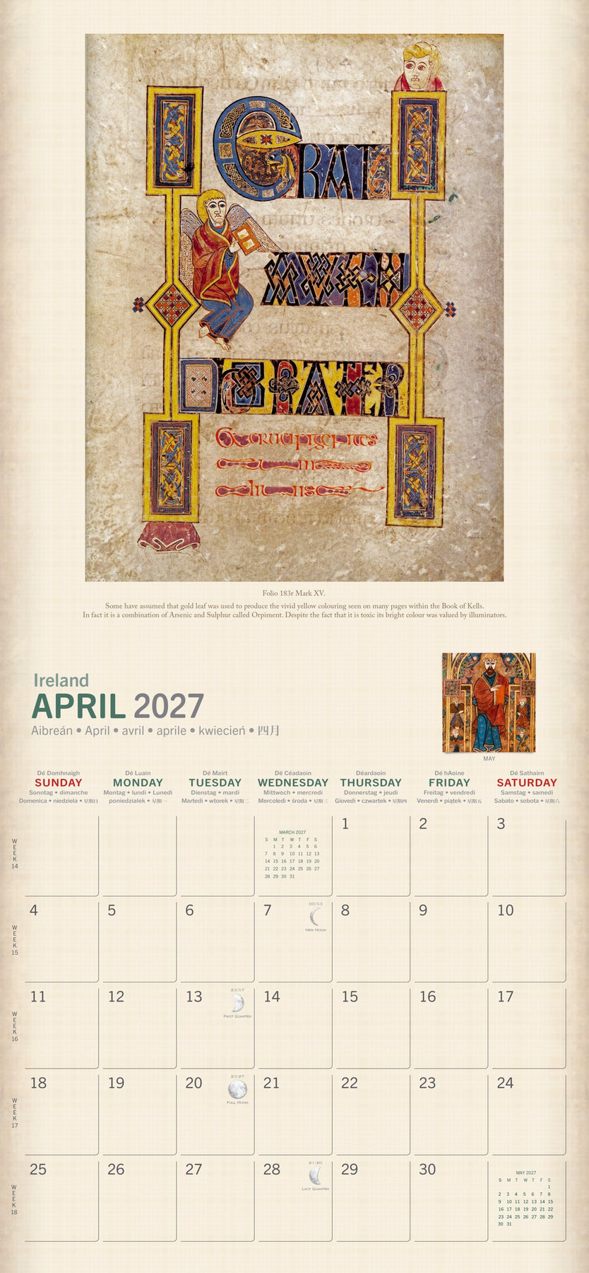 Prix régulier €14.99This calendar has been produced utilising a fine art printing process which renders the images in a much higher resolution more akin to a photographic print. There is information about the Book of Kells on each page.